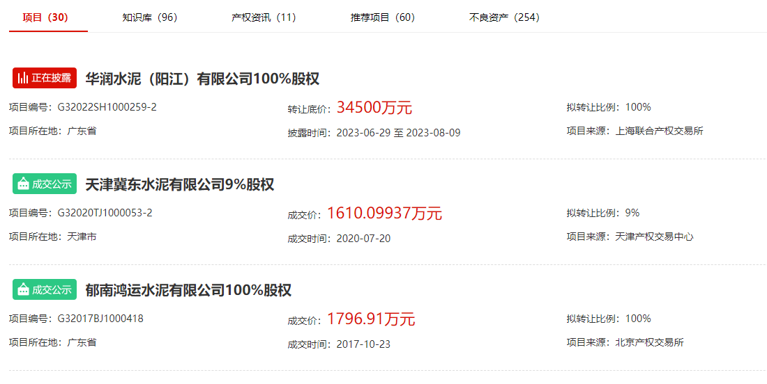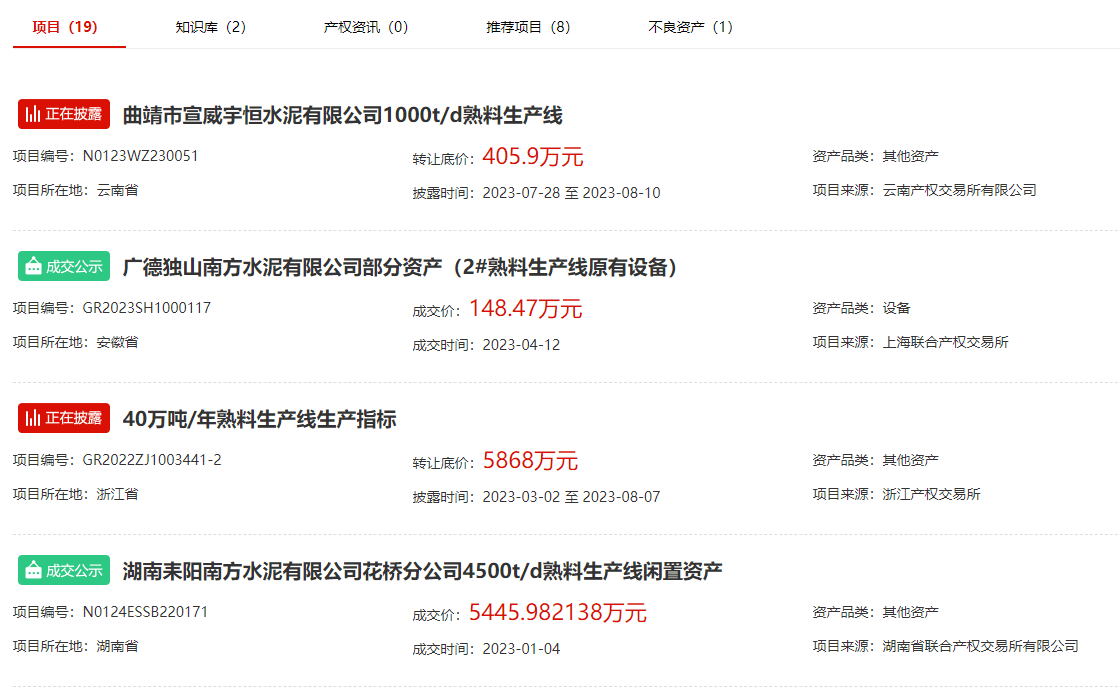 另有包含華潤(rùn)水泥、冀東水泥、萬(wàn)年青水泥在內(nèi)的4家品牌企業(yè)公開(kāi)出讓企業(yè)股權(quán);包含行業(yè)知名企業(yè)蕪湖海螺水泥在內(nèi)的兩家企業(yè)公開(kāi)出讓土地使用權(quán);包含天山水泥、中聯(lián)水泥、南方水泥、北方水泥、冀東水泥在內(nèi)的14家企業(yè)公開(kāi)出讓熟料生產(chǎn)線、熟料指標(biāo)、房屋建筑物、構(gòu)筑物及機(jī)器設(shè)備等資產(chǎn)。