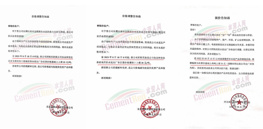 河南區(qū)域8月份以來已經(jīng)分別于8月4日和11日前后連續(xù)兩次上調(diào)報價,累計上調(diào)50-60元/噸,涉及當?shù)匕ㄌ烊鹚?、中?lián)水泥在內(nèi)的數(shù)十家主要品牌企業(yè)。
