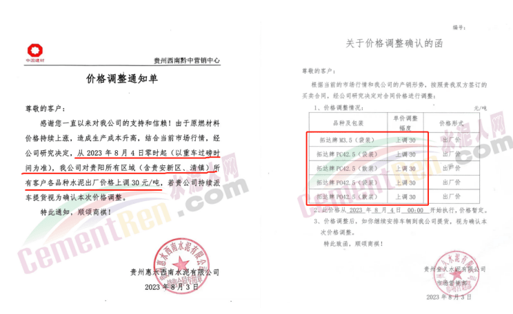 貴州區(qū)域包括紅獅、海螺、臺泥等10多家企業(yè)宣布漲價