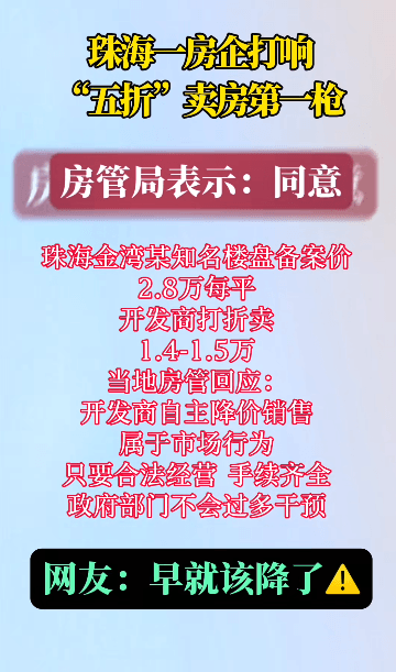 同期,珠海金灣某知名樓盤備案價(jià)2.8萬(wàn),每平開發(fā)商打折賣1.4萬(wàn)~1.5萬(wàn)。當(dāng)?shù)胤抗芑貞?yīng)稱,開發(fā)商自主降價(jià)銷售屬于市場(chǎng)行為,只要合法經(jīng)營(yíng)手續(xù)齊全政府部門不會(huì)過多干預(yù)。