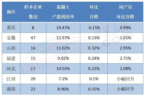 其中,安徽、山西、河北近期天氣利好施工,攪拌站恢復(fù)正常供應(yīng),混凝土發(fā)運(yùn)量出現(xiàn)小幅回升;重慶新開工項(xiàng)目較少,需求不佳,混凝土發(fā)運(yùn)量有所降低;福建市場(chǎng)新增較少,多數(shù)已在手訂單項(xiàng)目有所開工,因此帶來(lái)些許新增需求,短期來(lái)看,項(xiàng)目工程進(jìn)度受到資金困擾較大。