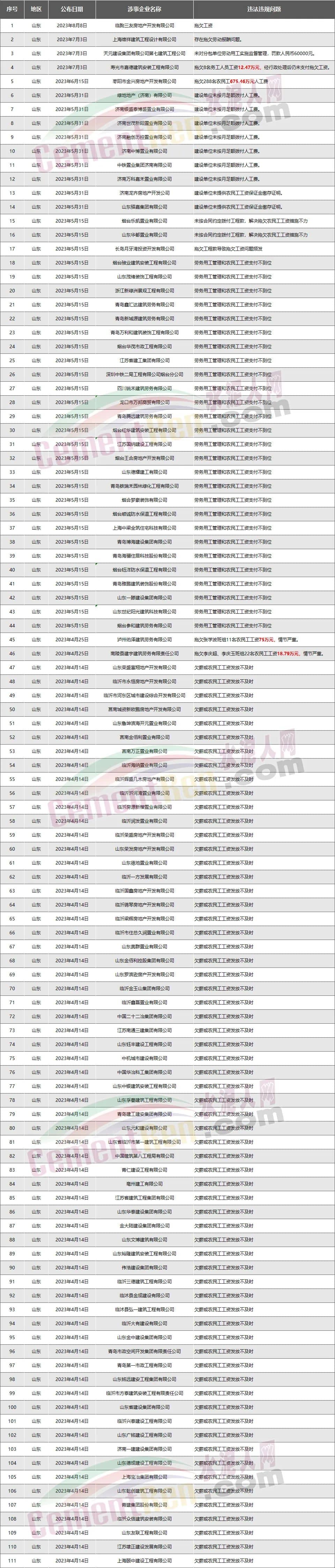 山東111家房企、建企欠薪被通報或處罰,涉及金額781.72萬元