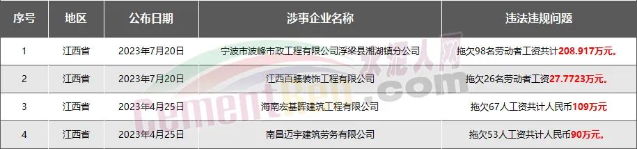 江西省4家房企、建企欠薪被通報或處罰,涉及金額435.68萬元