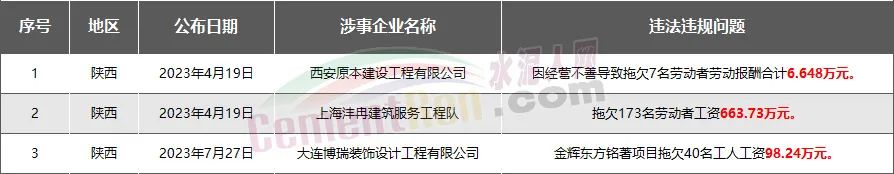 陜西省3家房企、建企欠薪被通報或處罰,涉及金額768.61萬元