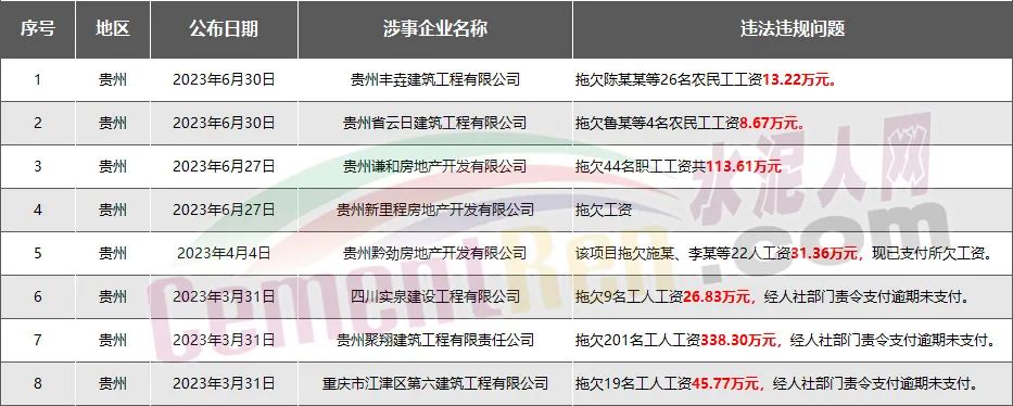 貴州省8家房企、建企欠薪被通報或處罰,涉及金額577.76萬元