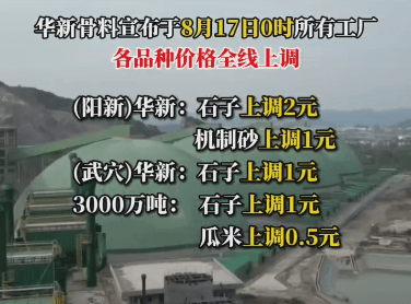 另據(jù)市場反饋,華新骨料曾于8月17日0時上調(diào)所有工廠產(chǎn)品價格。
