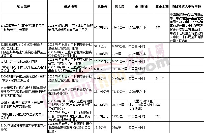 據(jù)水泥人網(wǎng)了解,9月份以來,包括國家發(fā)改委、省級發(fā)改委及交通廳、自然資源部以及交通運輸部等多個部門審批通過了14個重大交通項目,其中包括公路項目10個,鐵路項目2個,城軌交通項目和機場項目各1個,工程總投資約1830億元。