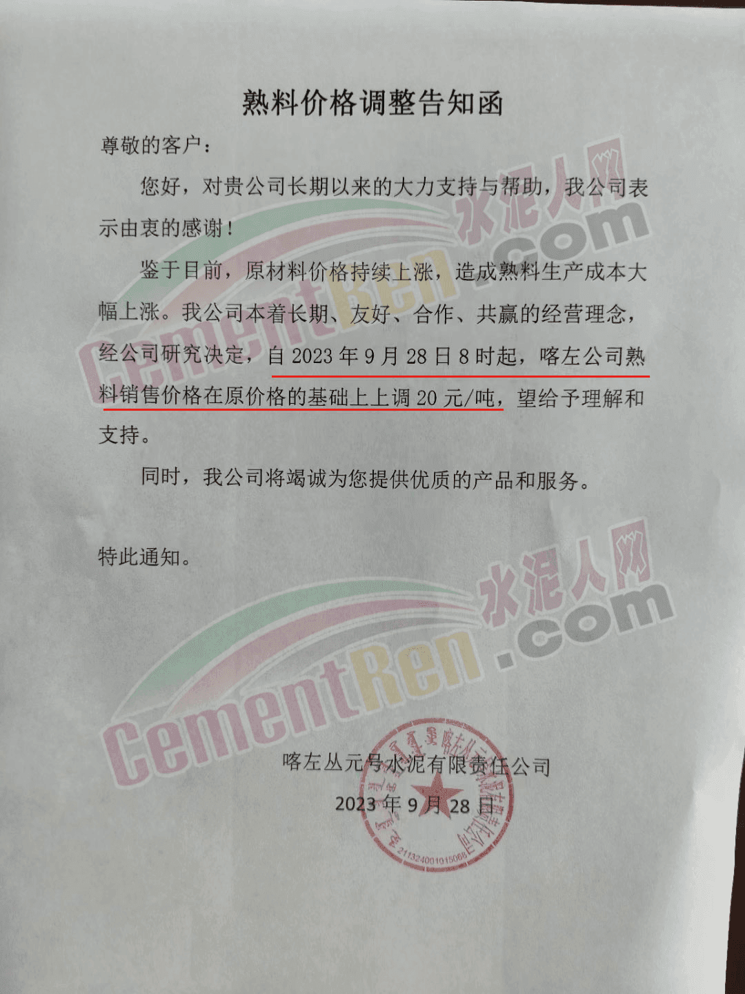 9月28日,山水水泥旗下遼寧喀佐叢元號(hào)水泥第四次通知上調(diào)熟料報(bào)價(jià)20元/噸。9月內(nèi)4連漲,累計(jì)上調(diào)100元/噸。