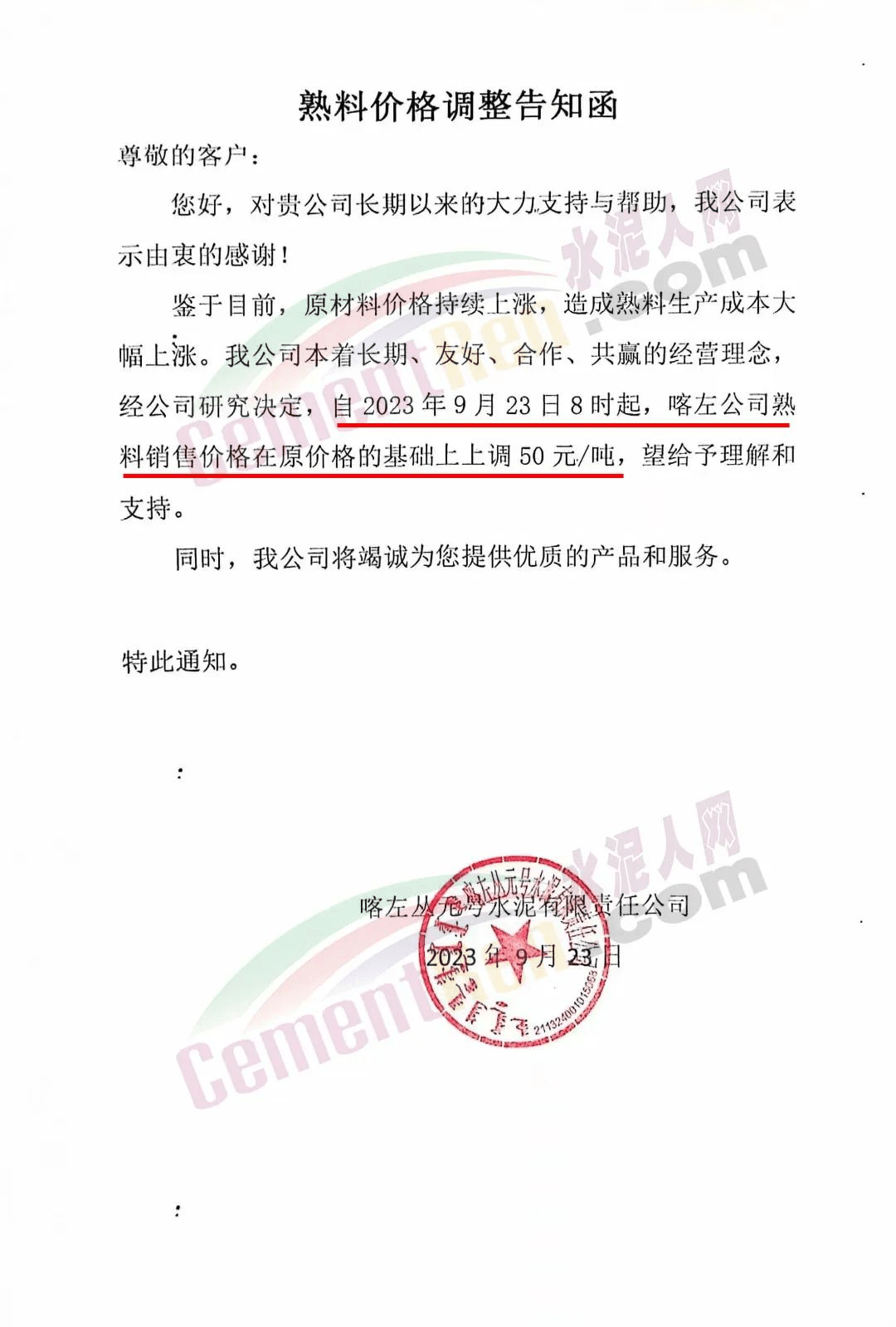 湖北玖龍:10月7日零點(diǎn)開(kāi)始,玖牛、海優(yōu)、海牛、地優(yōu)、地牛、地再、江再上調(diào)50元/噸。