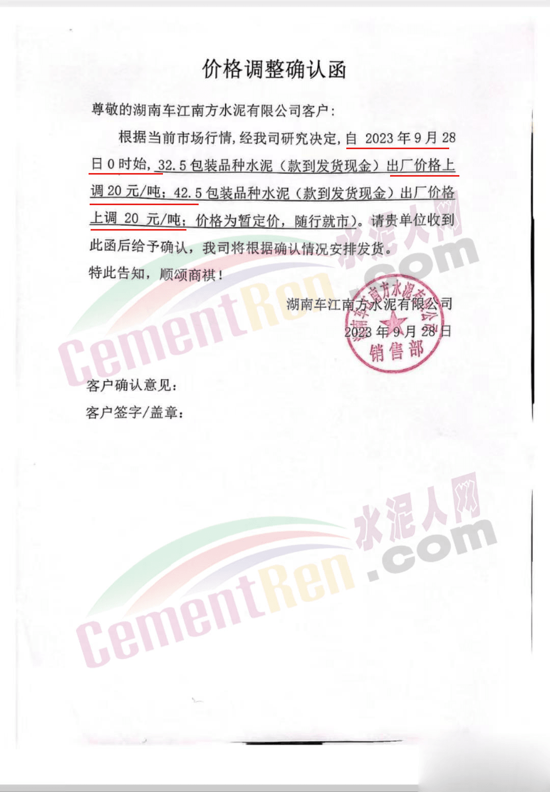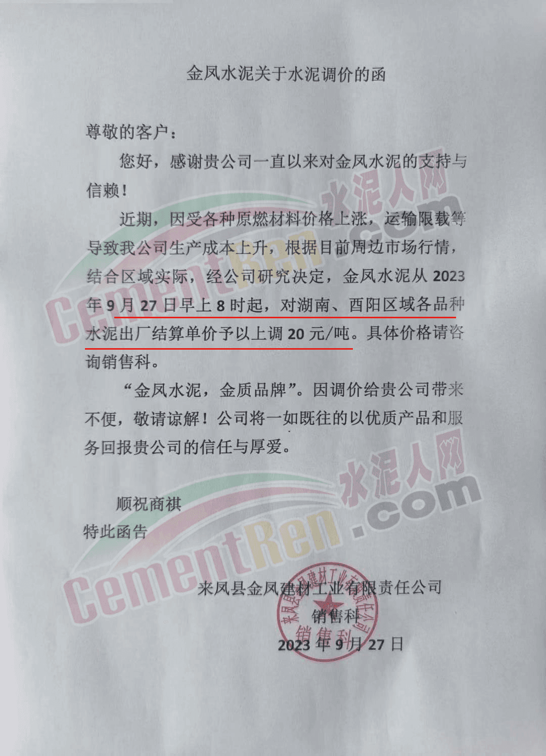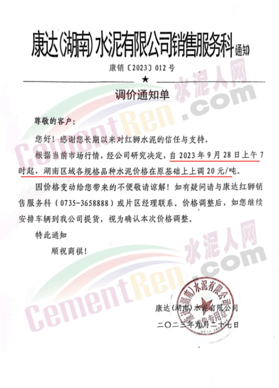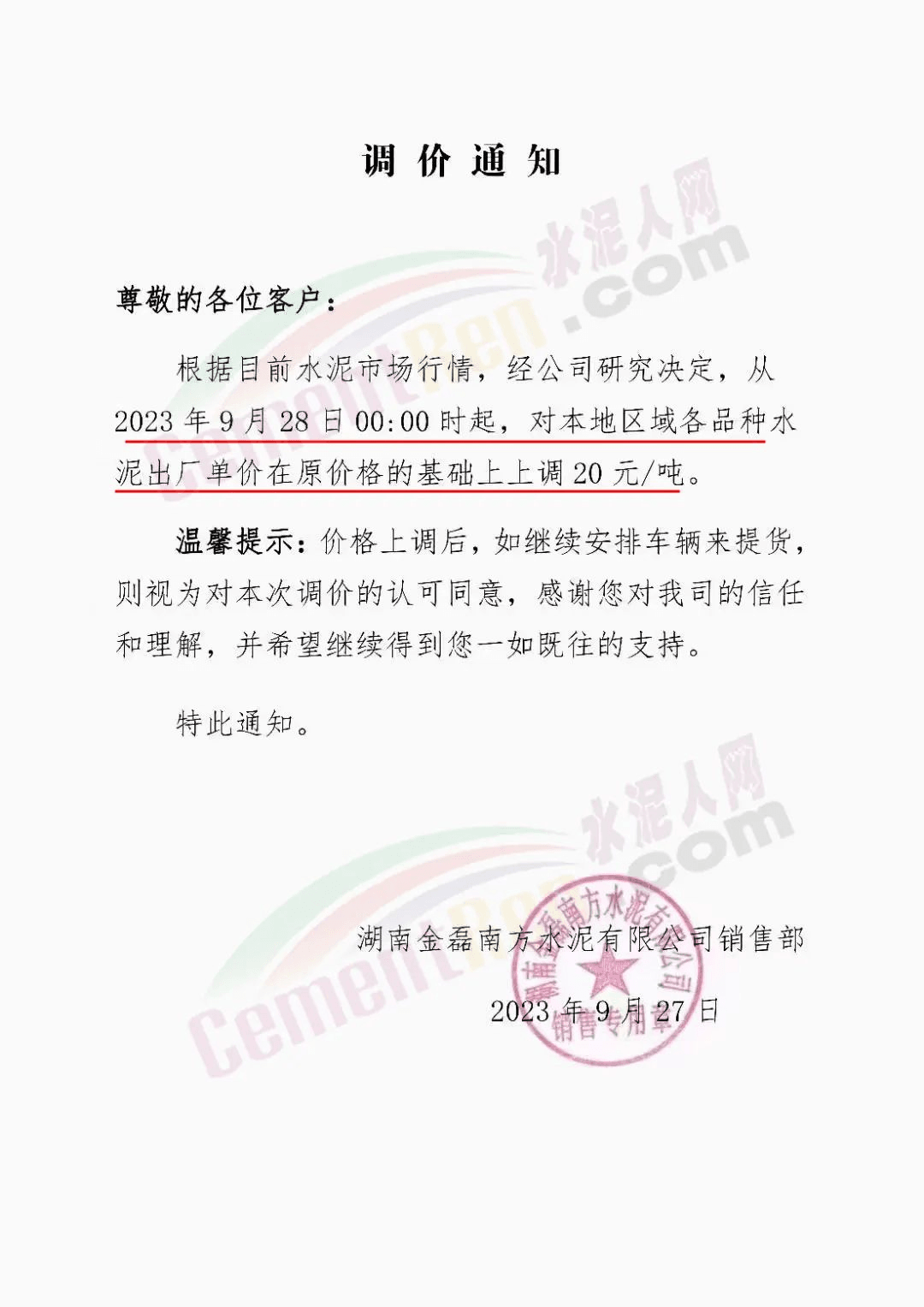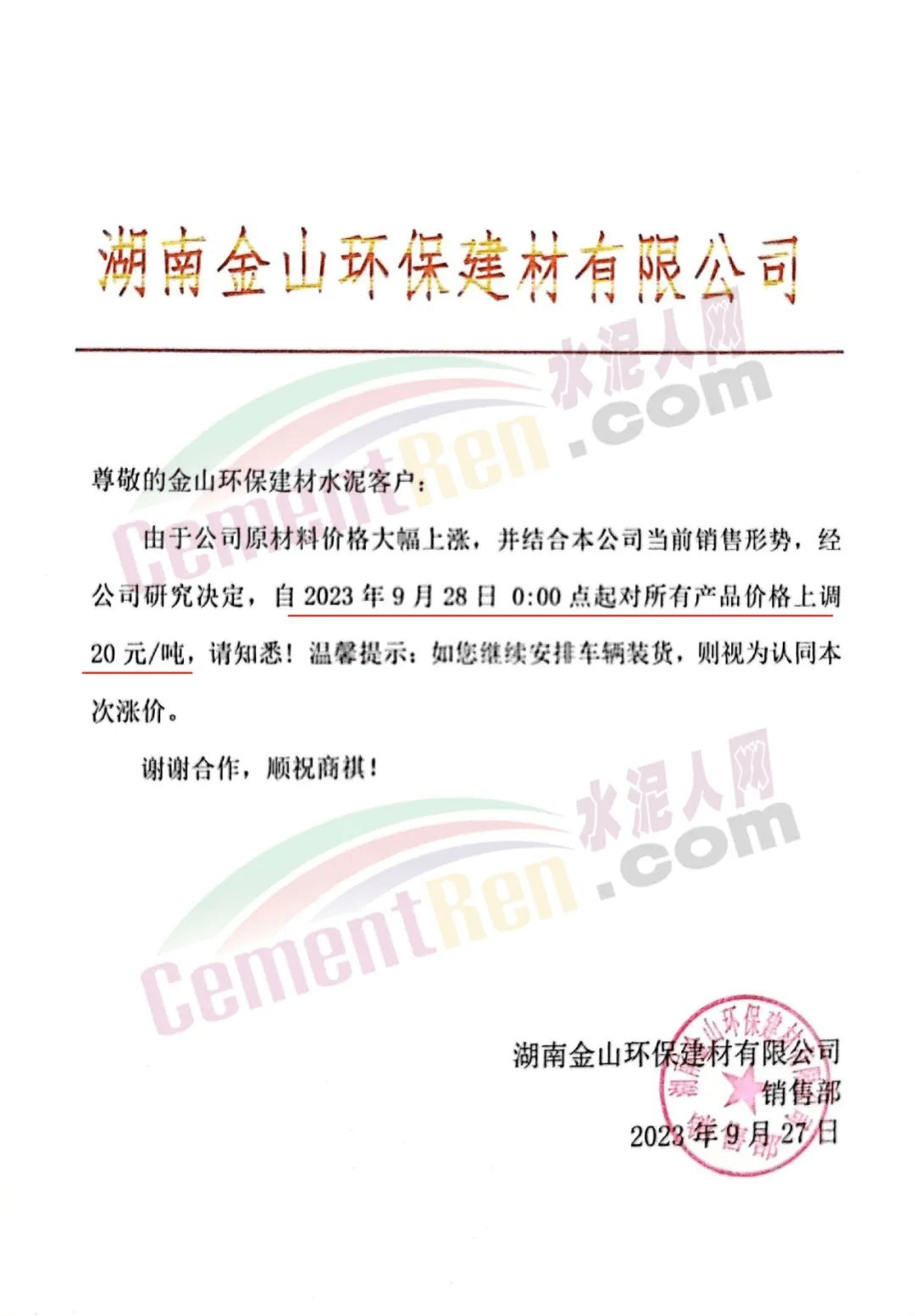 9月27日~28日,湖南省內(nèi)主要品牌企業(yè)通知上調(diào)水泥報(bào)價(jià),9月份內(nèi)已連續(xù)2—3次上調(diào)報(bào)價(jià)。當(dāng)?shù)刂饕放破髽I(yè)負(fù)責(zé)人表示,目前各企業(yè)庫(kù)位較低,疊加下游經(jīng)銷(xiāo)商備貨意愿強(qiáng)烈,主要品牌企業(yè)門(mén)前開(kāi)始排隊(duì)。預(yù)計(jì)本輪全區(qū)域普漲,要到10月中旬前后落實(shí)到位。同時(shí)為提升盈利,當(dāng)?shù)刂饕放破髽I(yè)10月份仍將繼續(xù)推動(dòng)價(jià)格上調(diào)。
