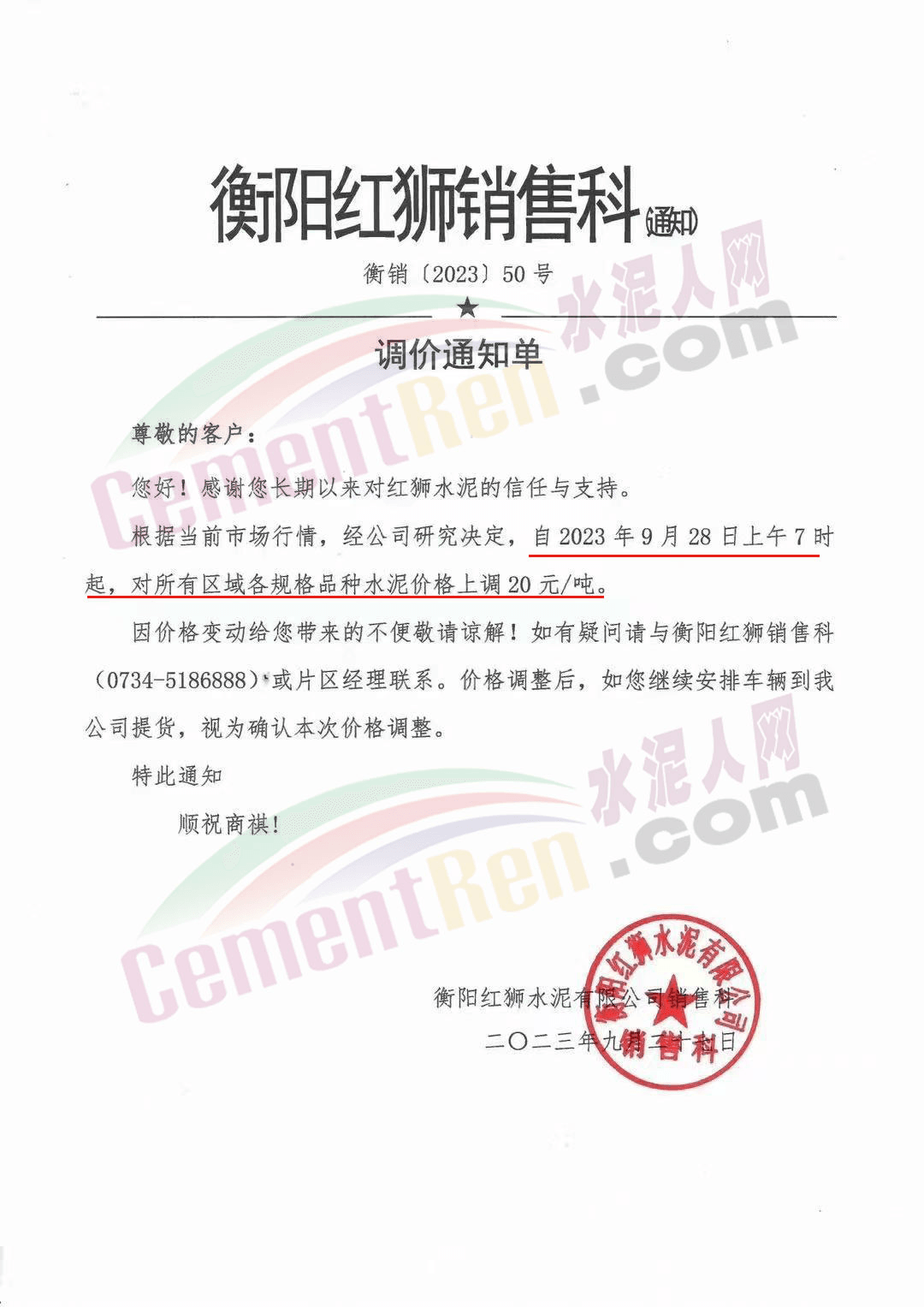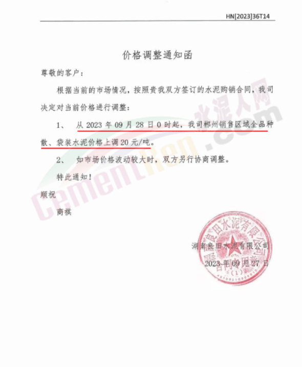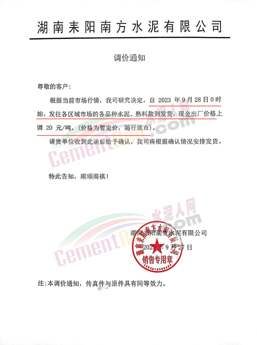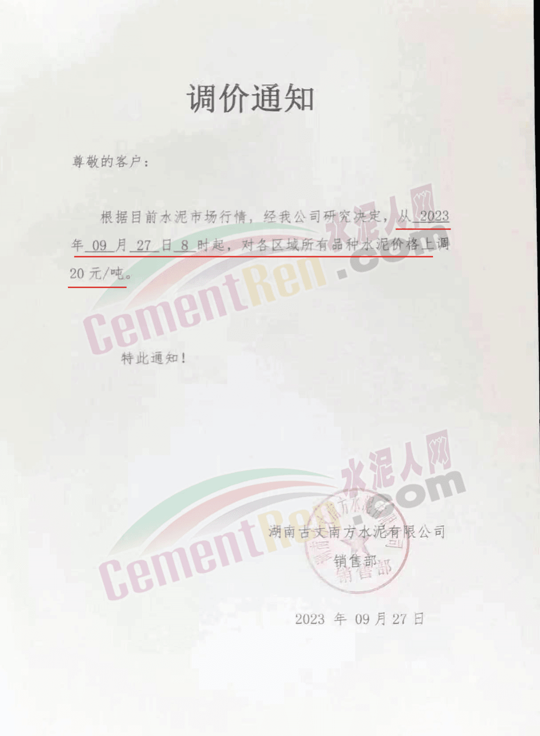 9月27日~28日,湖南省內(nèi)主要品牌企業(yè)通知上調(diào)水泥報(bào)價(jià),9月份內(nèi)已連續(xù)2—3次上調(diào)報(bào)價(jià)。當(dāng)?shù)刂饕放破髽I(yè)負(fù)責(zé)人表示,目前各企業(yè)庫(kù)位較低,疊加下游經(jīng)銷(xiāo)商備貨意愿強(qiáng)烈,主要品牌企業(yè)門(mén)前開(kāi)始排隊(duì)。預(yù)計(jì)本輪全區(qū)域普漲,要到10月中旬前后落實(shí)到位。同時(shí)為提升盈利,當(dāng)?shù)刂饕放破髽I(yè)10月份仍將繼續(xù)推動(dòng)價(jià)格上調(diào)。