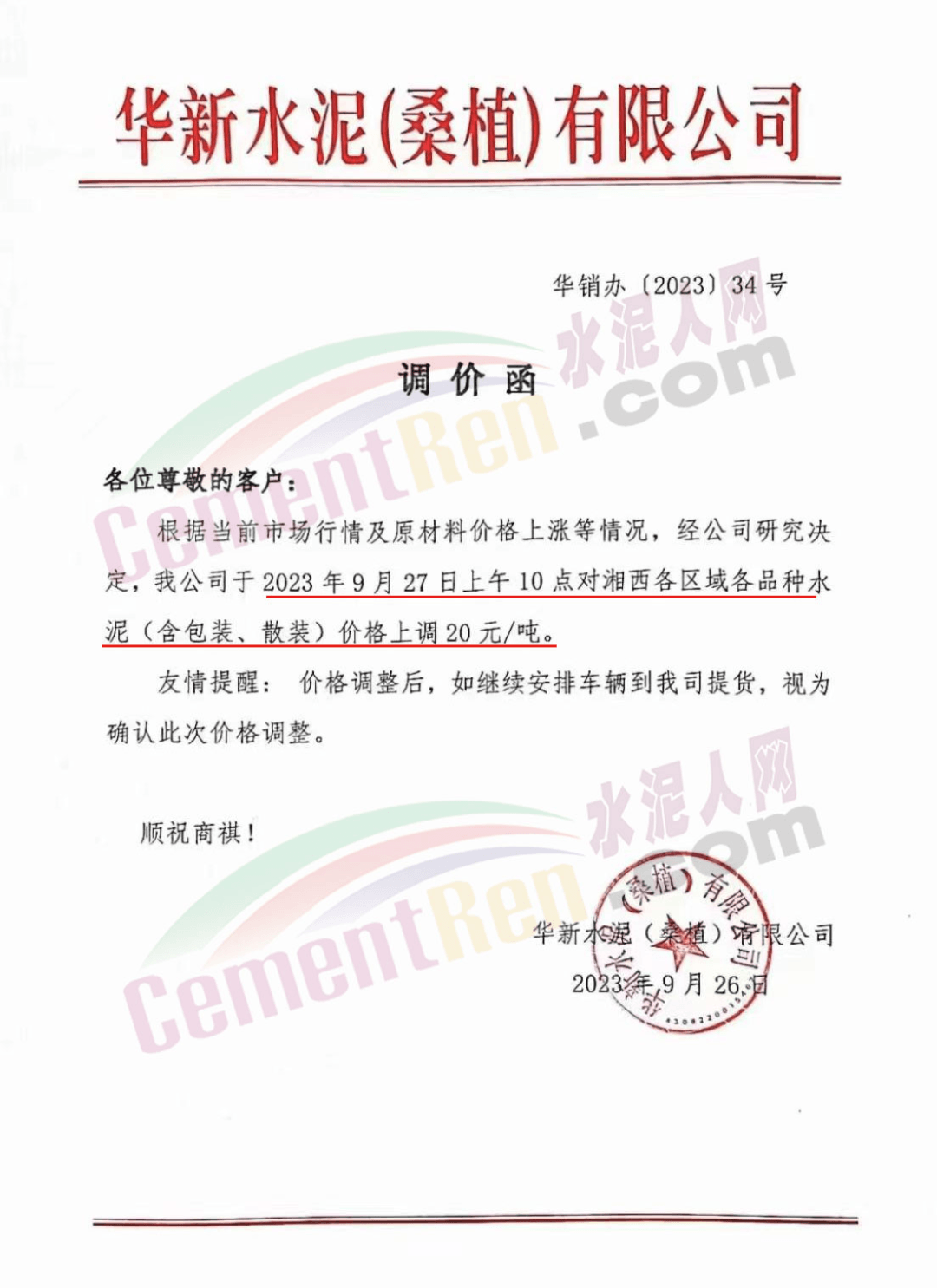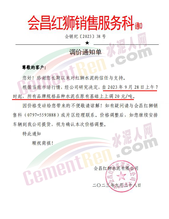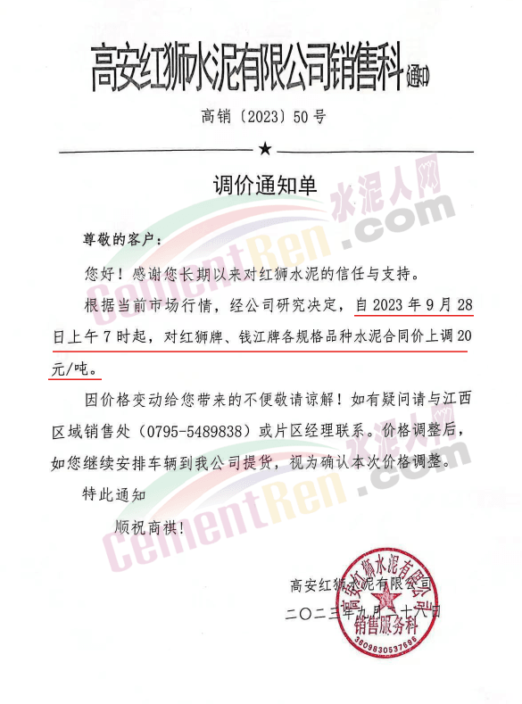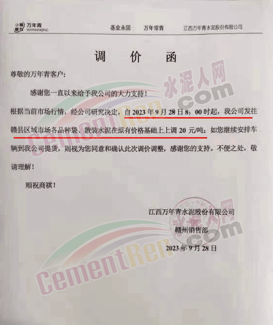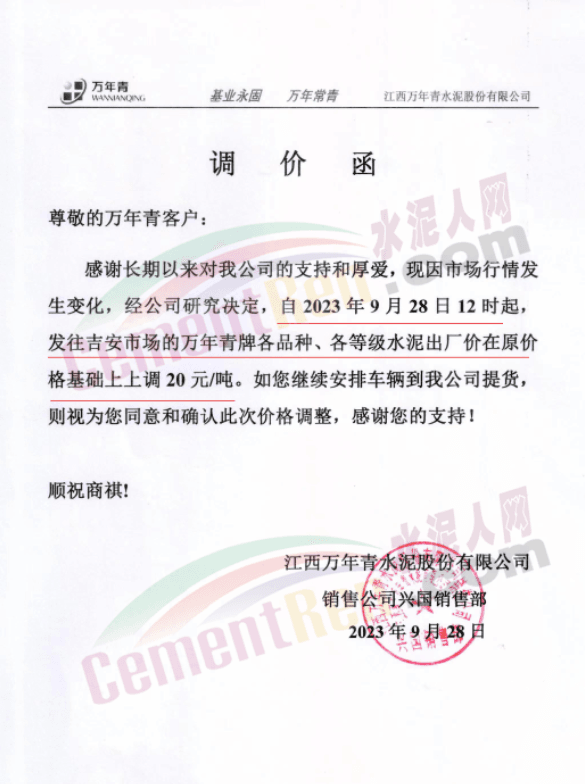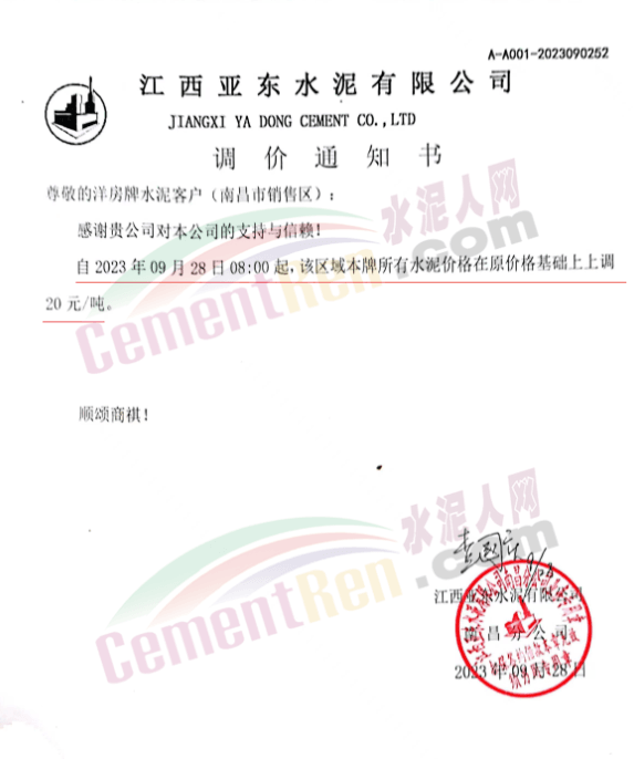 28日,江西區(qū)域主要品牌水泥企業(yè)通知,各品種水泥價(jià)格上調(diào)20元/噸。經(jīng)銷(xiāo)商反饋稱(chēng),這輪漲價(jià)落實(shí)情況還要看海螺、南方能不能跟進(jìn),調(diào)價(jià)落實(shí)大概率是到十一長(zhǎng)假之后了。