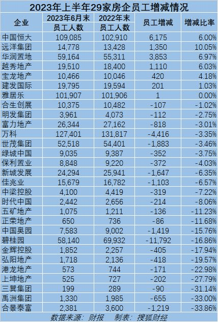 相比2022年,絕大多數房企上半年月均福利下滑,時代中國由去年月均1.68萬元降至今年5300元,員工人均福利每月減少11500元,薪酬福利猛降68%;禹州集團,相比2022年,員工人均福利今年上半年減少7400元,降幅達38%。