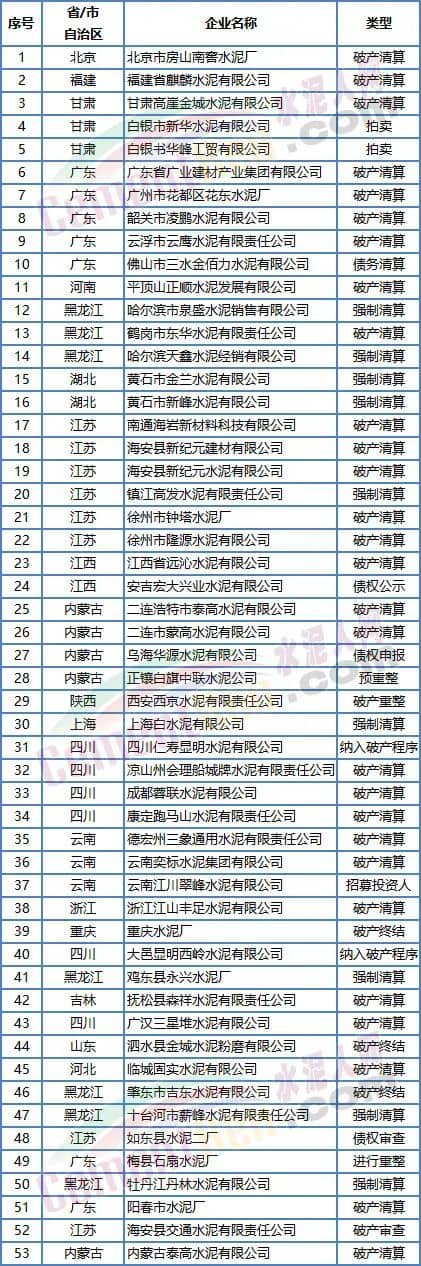 3家水泥企業(yè)破產(chǎn),終結(jié)破產(chǎn)清算程序