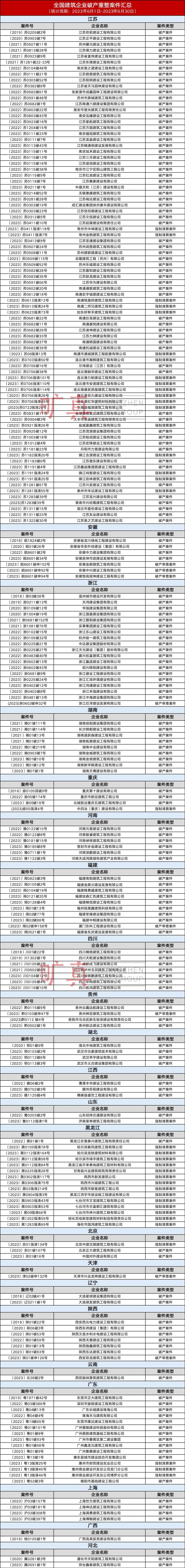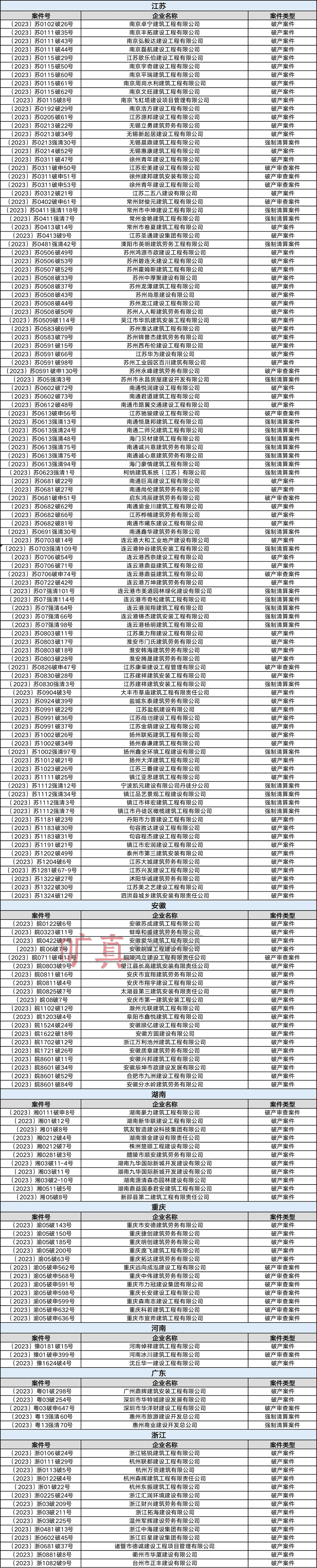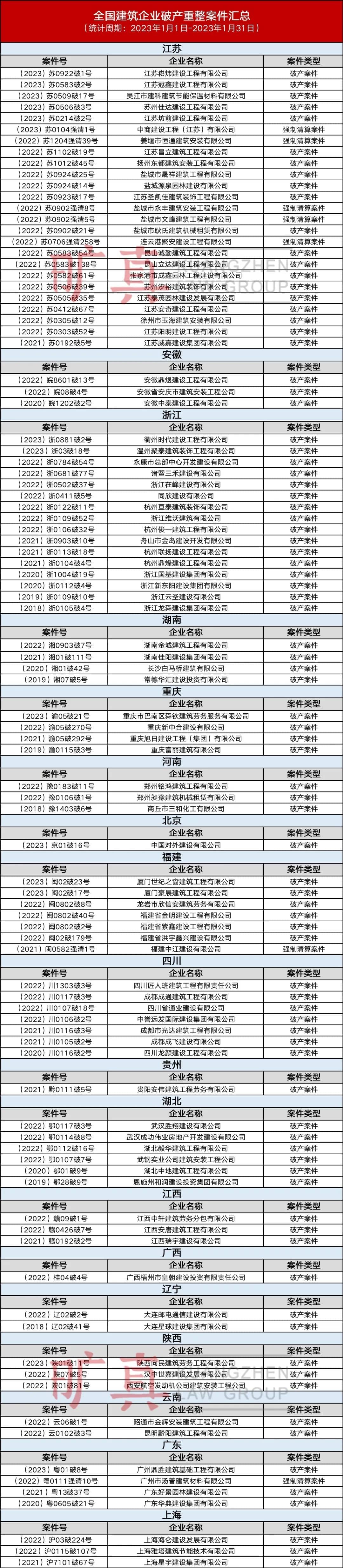 2023年1月全國建筑企業(yè)破產(chǎn)重整案件匯總