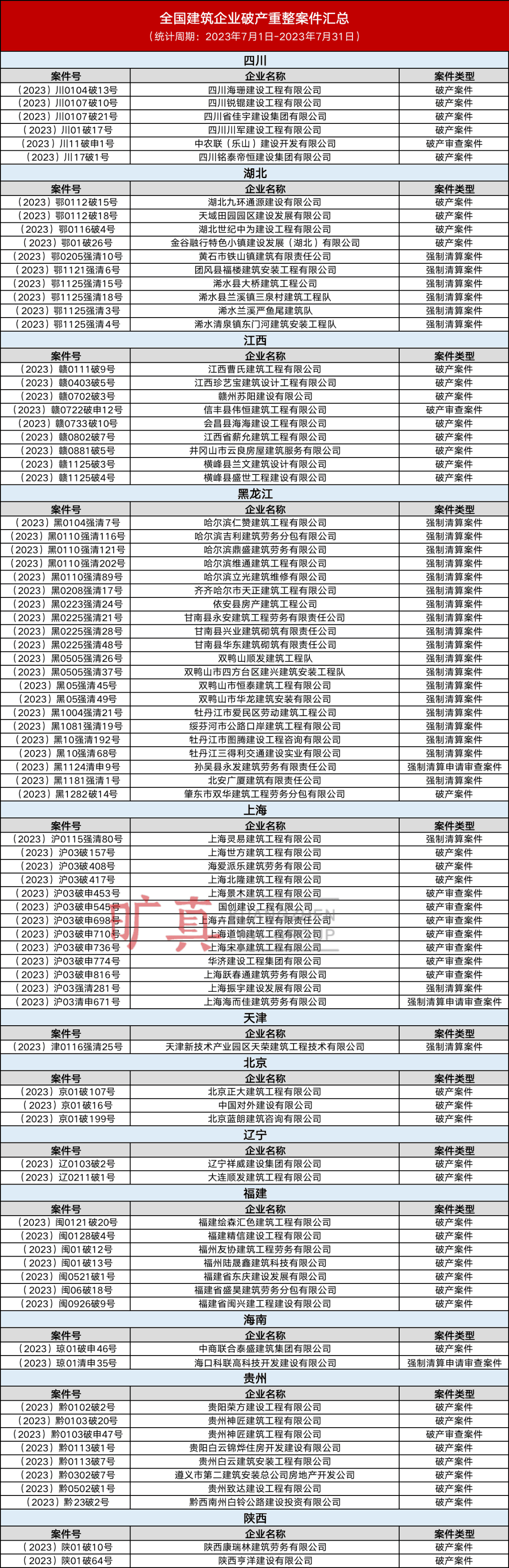 2023年7月全國建筑企業(yè)破產(chǎn)重整案件匯總