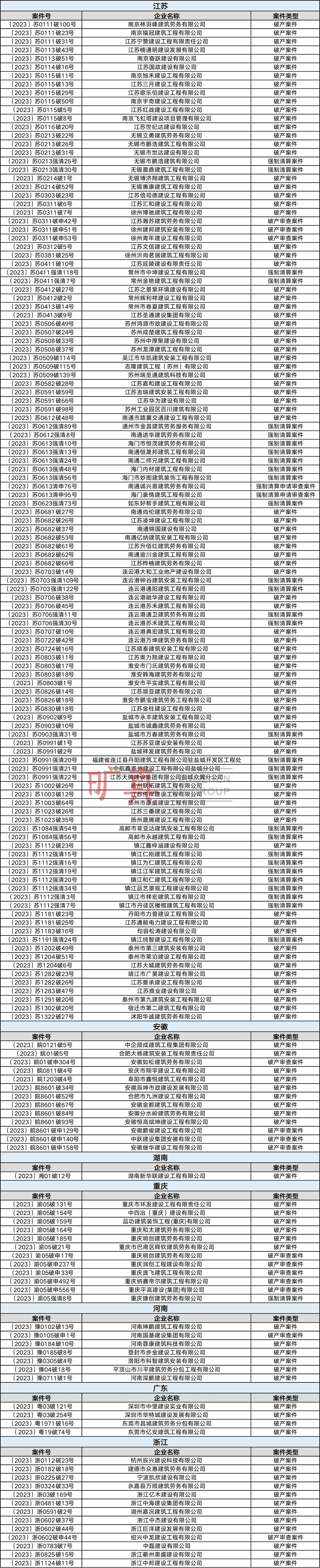 2023年6月全國建筑企業(yè)破產(chǎn)重整案件匯總