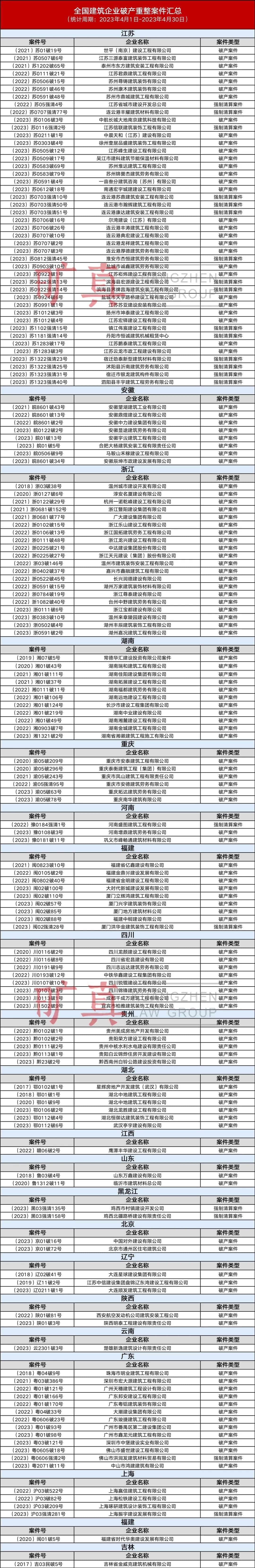 2023年4月全國建筑企業(yè)破產(chǎn)重整案件匯總
