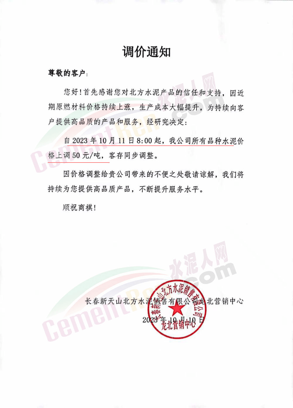 水泥人網(wǎng)通訊員消息:日前遼、吉、黑區(qū)域主要品牌企業(yè)再次通知上調(diào)水泥、熟料報(bào)價(jià)。