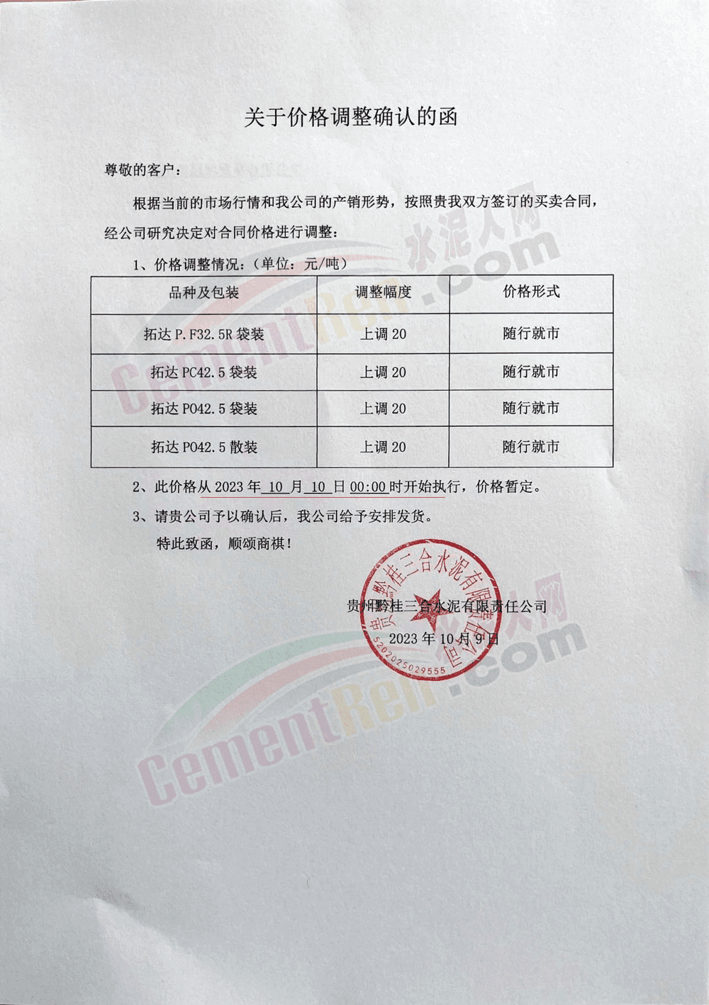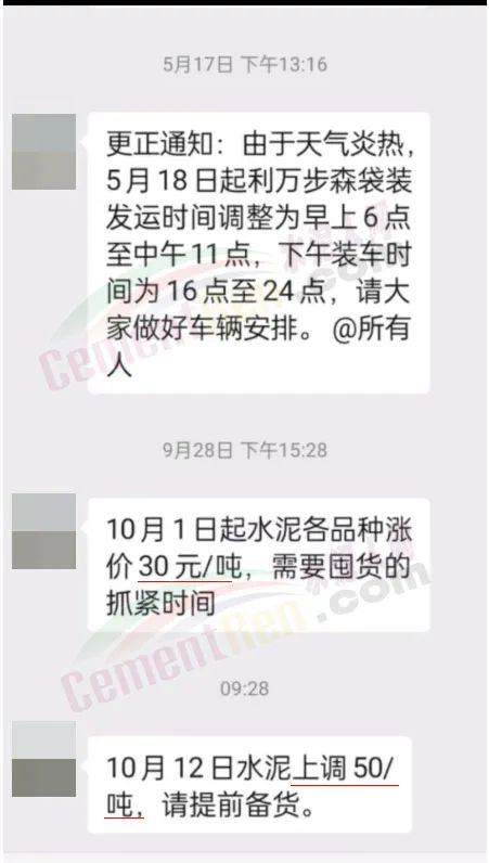 日前,河南地區(qū)主要品牌企業(yè)天瑞、中聯(lián)同力等通知上調(diào)報(bào)價(jià)30元/噸。當(dāng)?shù)亟?jīng)銷(xiāo)商反饋稱(chēng):企業(yè)通知10月8日9點(diǎn)降價(jià)20元/噸,降后P.O42.5散裝水泥出廠(chǎng)報(bào)價(jià)260元/噸;10月9日17點(diǎn)又通知上調(diào)30元/噸,上調(diào)后P.O42.5散裝水泥出廠(chǎng)價(jià)報(bào)290元/噸。變價(jià)像“川劇變臉”一樣快。