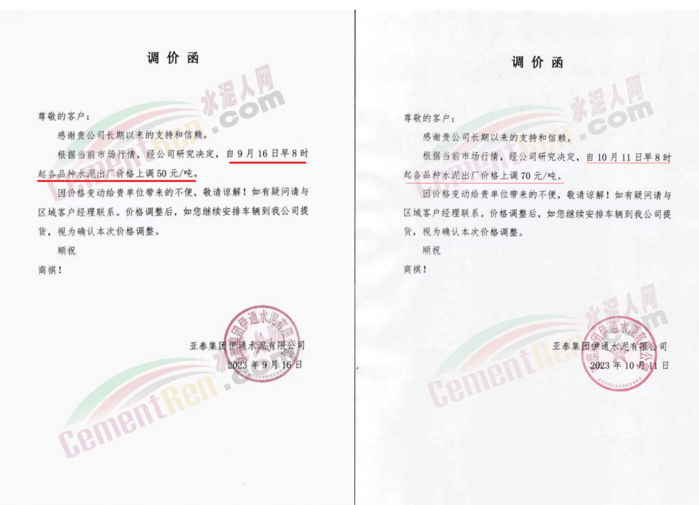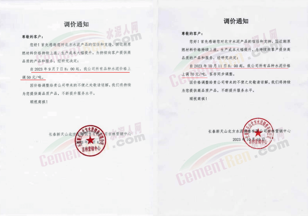 湖南寧鄉(xiāng)南方水泥有限公司分別于9月20日,9月28日,10月12日三次通知上調(diào)水泥報(bào)價(jià)各20元/噸,累計(jì)上調(diào)60元/噸。
