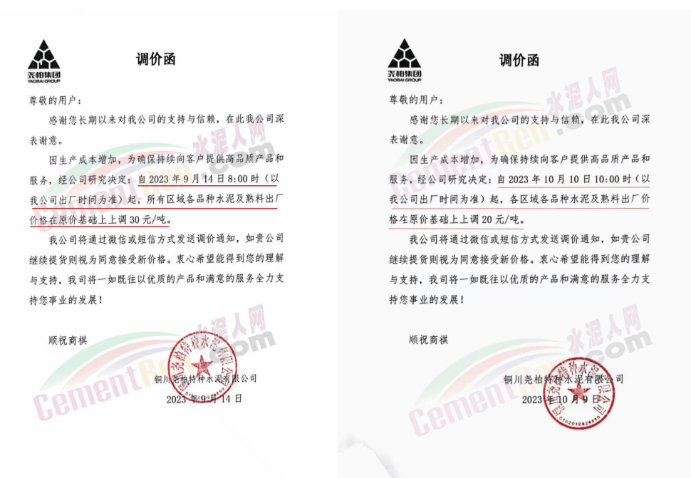 陜西關(guān)中區(qū)域主要品牌企業(yè)堯柏、冀東等分別于9月中旬和10月中旬兩次上調(diào)報(bào)價(jià),累計(jì)上調(diào)50元/噸。