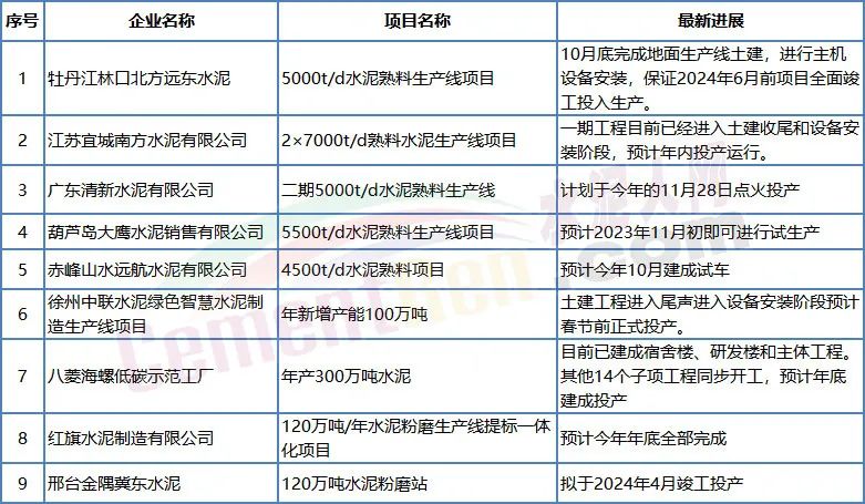 從目前各項(xiàng)目最新動(dòng)態(tài)可見(jiàn),部分在建項(xiàng)目已陸續(xù)點(diǎn)火投產(chǎn),另有部分已開(kāi)工在建項(xiàng)目正加緊建設(shè)中。據(jù)不完全統(tǒng)計(jì)已投產(chǎn)的15個(gè)熟料項(xiàng)目,合計(jì)產(chǎn)能達(dá)2280萬(wàn)噸/年;下半年將投產(chǎn)的5個(gè)項(xiàng)目合計(jì)產(chǎn)能達(dá)810萬(wàn)噸/年,合計(jì)產(chǎn)能達(dá)3090萬(wàn)噸/年。