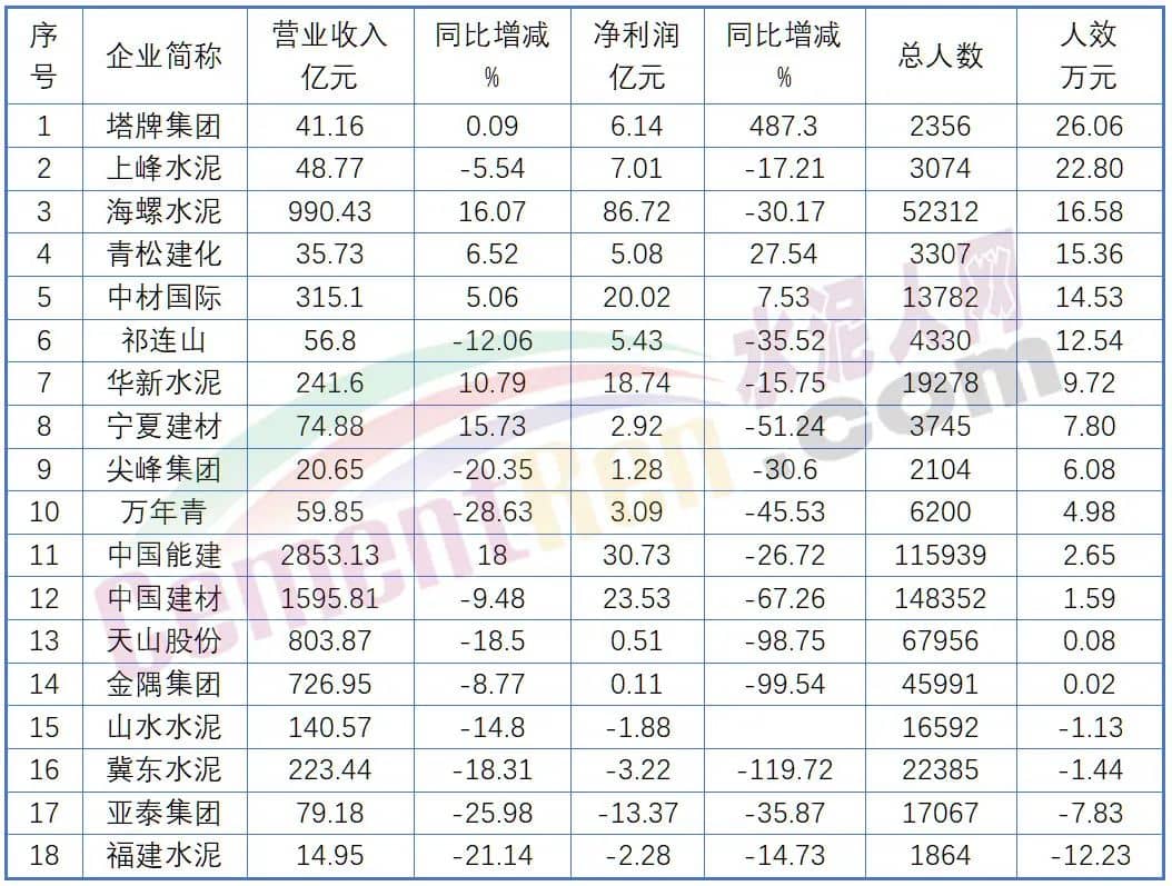上市公司“人效”大排名,塔牌水泥人均26.06萬元,拔得頭籌