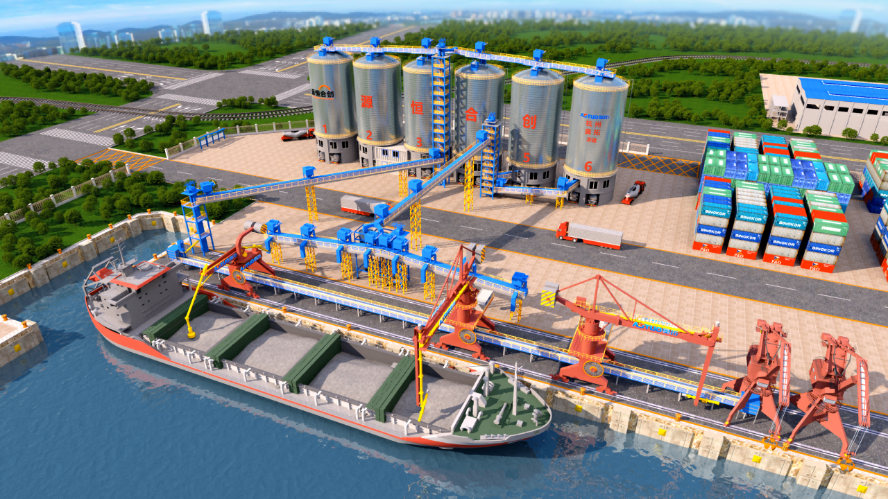 本次中標的粉料倉儲中轉(zhuǎn)項目,位于中國百年老港、國家4A級物流企業(yè)----山東省龍口港,區(qū)域位置十分優(yōu)越。根據(jù)投資方源恒合創(chuàng)的規(guī)劃要求,本項目配置2臺600噸/小時的環(huán)保型連續(xù)式螺旋卸船機、1臺600噸/小時環(huán)保型裝船機器人與6只總儲量為60000噸粉料儲庫,年中轉(zhuǎn)能力200萬噸。系統(tǒng)智能化程度高,不僅要實現(xiàn)裝船AI無人作業(yè)、散裝發(fā)放AI智能導引+對準+裝料+計量+收塵等生產(chǎn)線設備運行智能化,還打通產(chǎn)品銷售、庫位管理與財務收付款三個維度,實現(xiàn)“生產(chǎn)控制+產(chǎn)品銷售+財務管理”的數(shù)字化管理。標的項目環(huán)保要求高,每個轉(zhuǎn)運點均配備高效除塵器,物料輸送全過程進行全封閉處理,旨在打造綠色環(huán)保粉料倉儲中轉(zhuǎn)的標桿,助力綠色港口建設。