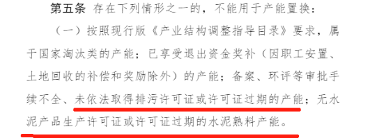 根據(jù)工業(yè)和信息化部關(guān)于印發(fā)《水泥玻璃行業(yè)產(chǎn)能置換實施辦法(2024年本)》第二章第五條第一款:備案、環(huán)評等審批續(xù)不全、未依法取得排污許可證或許可證過期;無水泥產(chǎn)品生產(chǎn)許可證或許可證過期的水泥熟料產(chǎn)能,不能用于產(chǎn)能置換。