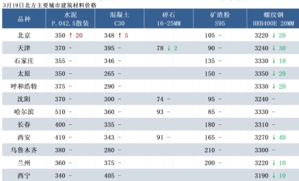 內蒙古:水泥有漲價趨勢,東部呼倫貝爾片區(qū)漲價,幅度在50~60 元/噸,地表工程沒有開工,市場沒有需求,暫未落實。