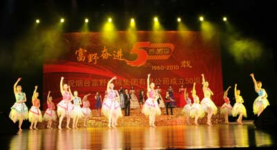2010年11月7日上午,煙臺(tái)富野機(jī)械集團(tuán)有限公司成立五十周年盛典暨大型文藝演出在煙臺(tái)大劇院隆重舉行。中國(guó)對(duì)外經(jīng)貿(mào)企業(yè)協(xié)會(huì)副會(huì)長(zhǎng)、山東省對(duì)外經(jīng)貿(mào)協(xié)會(huì)煙臺(tái)分會(huì)會(huì)長(zhǎng)許志強(qiáng),煙臺(tái)市經(jīng)濟(jì)和信息化委員會(huì)主任孫濤,煙臺(tái)市工商業(yè)聯(lián)合會(huì)主席夏曉峰,煙臺(tái)市民營(yíng)企業(yè)協(xié)會(huì)會(huì)長(zhǎng)欒魯閩,煙臺(tái)市機(jī)電國(guó)有控股有限公司董事長(zhǎng)趙衛(wèi)紅,煙臺(tái)市總工會(huì)副主席張曉東,原煙臺(tái)市機(jī)械局的領(lǐng)導(dǎo)、機(jī)械行業(yè)企業(yè)及其他兄弟企事業(yè)單位的代表、集團(tuán)老領(lǐng)導(dǎo)以及集團(tuán)所屬各企業(yè)1100余名員工共同參加了慶典活動(dòng)。